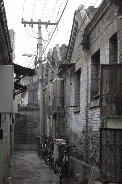 Petite ruelle avec vélos et fils électriques