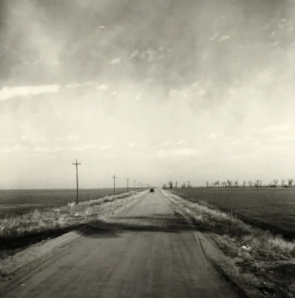 Route déserte traversant une plaine