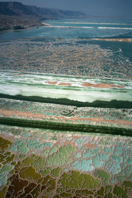 Vue aérienne des bassins d’évaporation de la Mer Morte