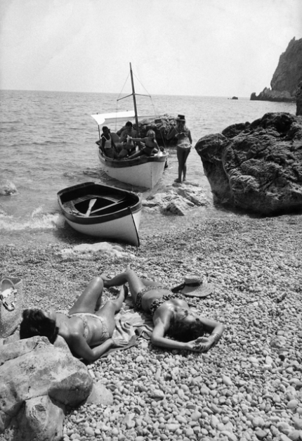 Femmes bronzant sur des galets