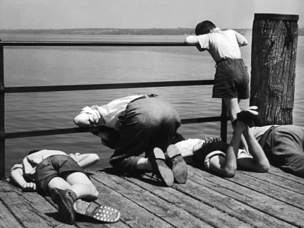 Enfants regardant l’eau depuis un ponton