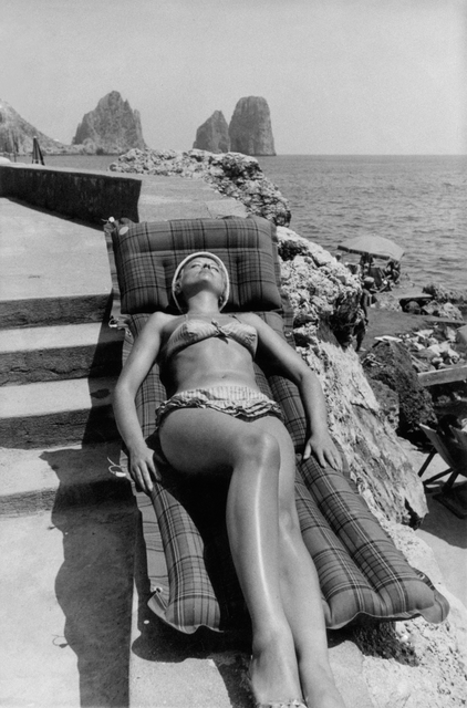 Femme se prélassant au soleil sur une chaise longue près de la mer