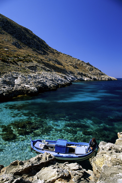 Femme observant une île rocheuse depuis un bateau