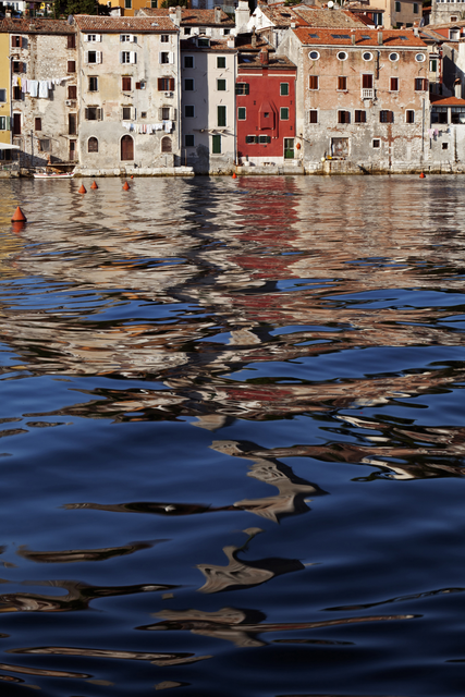 Réflexion de bâtiments colorés sur l’eau