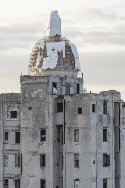 Bâtiment en rénovation avec dôme couvert d’échafaudages