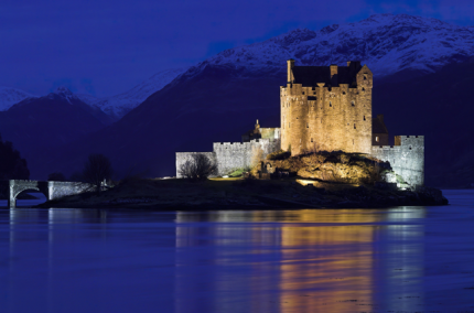 Château médiéval illuminé de nuit