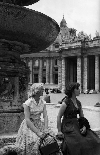 Deux femmes assises près d’une fontaine à Rome