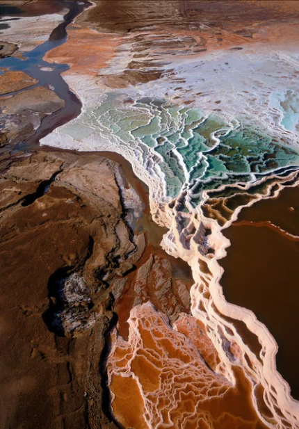 Terrasses de calcite multicolores dans un paysage naturel