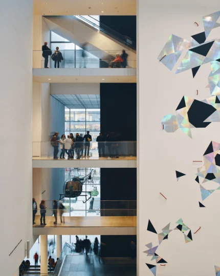 Muséum d’art moderne avec visiteurs et œuvres d’art