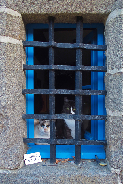 Chats derrière une fenêtre grillagée