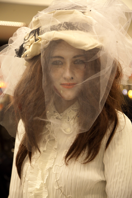 Femme en déguisement avec voile blanc