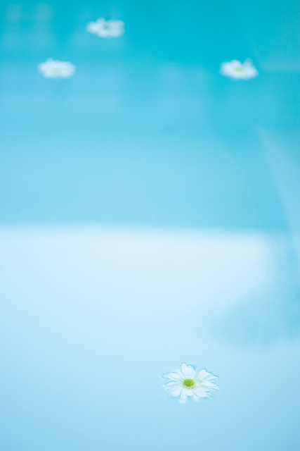 Fleurs flottant à la surface de l’eau bleue