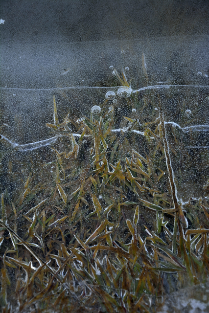 Gazon sous givre en hiver