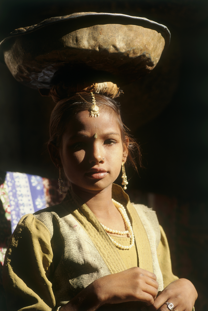 Femme en sari avec tissus colorés