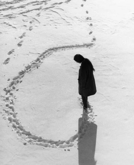 Personne seule sur une neige immaculée traçant un cercle