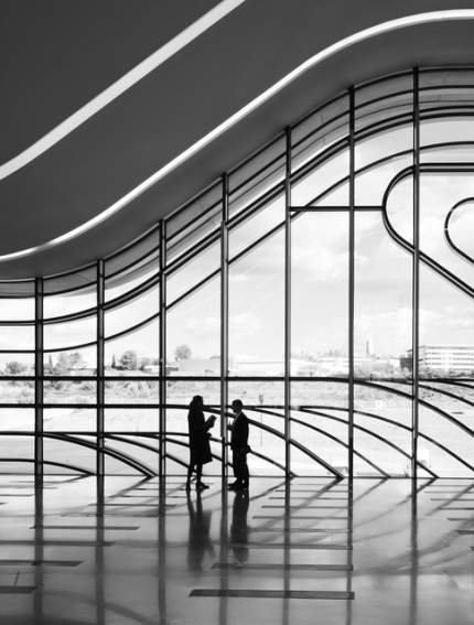 Silhouettes de Professionnels dans un Hall Moderne