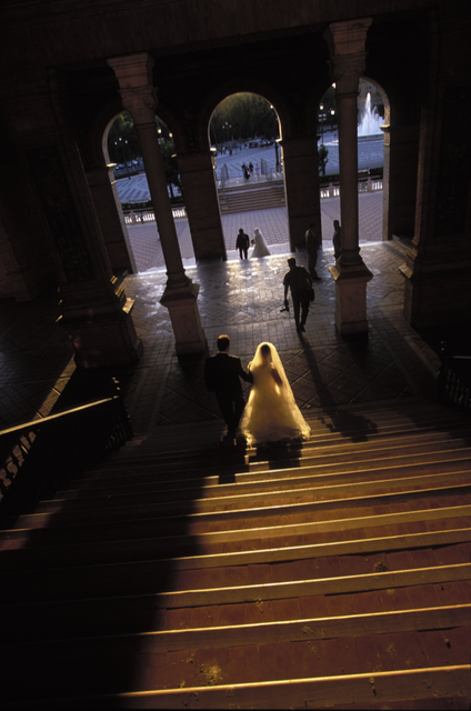 Mariage au crépuscule dans un bâtiment historique