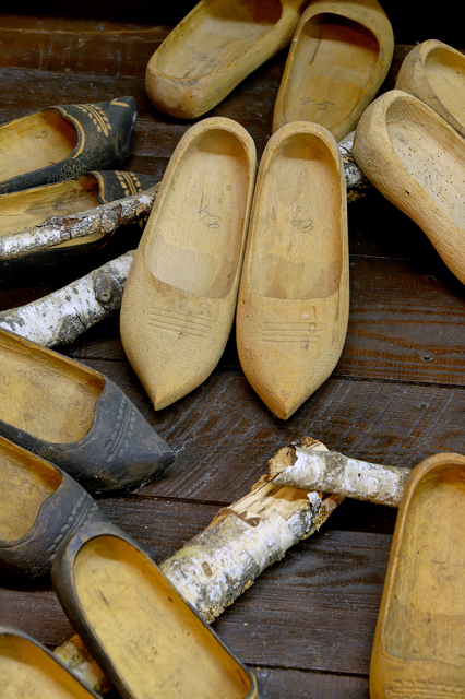 Sabots en bois traditionnels sur surface en bois