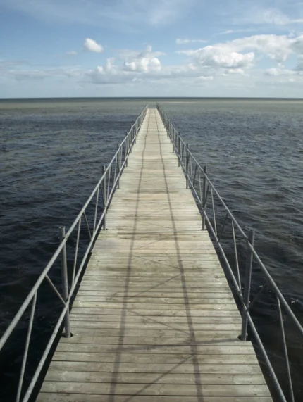 Jetée se prolongeant dans l’océan sous un ciel nuageux