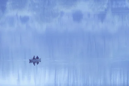 Deux Personnes dans un Bateau sur un Lac Calme