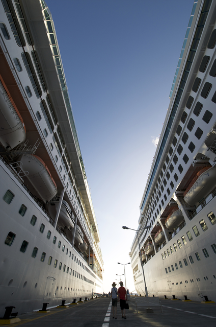 Entre Deux Navires de Croisière au Coucher du Soleil