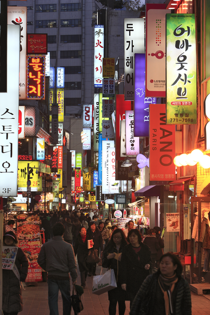 Rue commerçante animée avec enseignes lumineuses en Asie