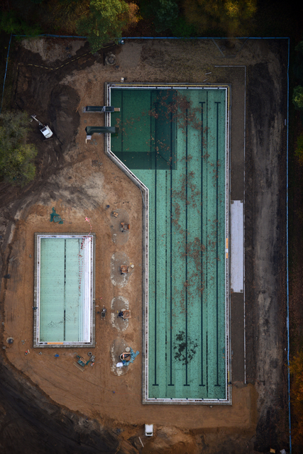 Chantier de piscine vue aérienne