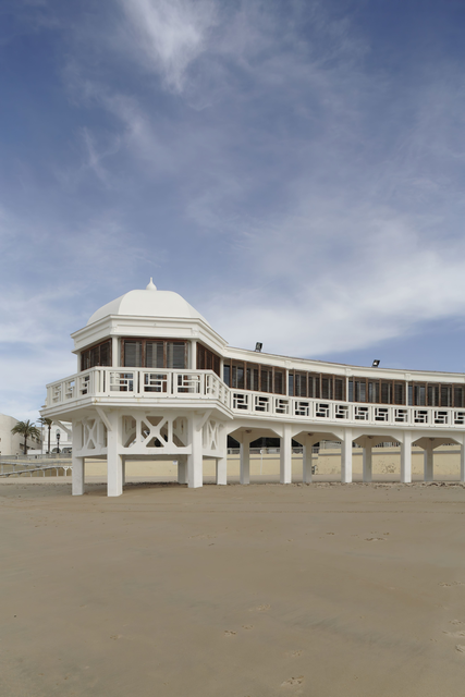 Bâtiment en bord de plage sous le ciel bleu