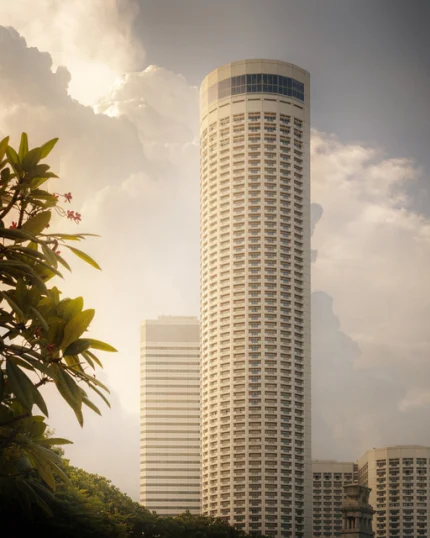 Gratte-ciel moderne sur fond de ciel nuageux