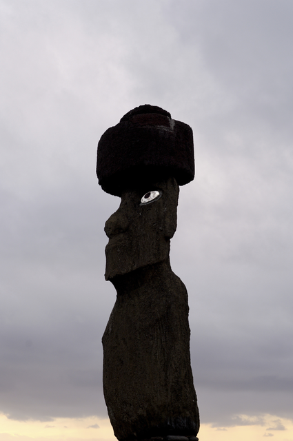 Statue Moai avec Pukao sur l’Île de Pâques