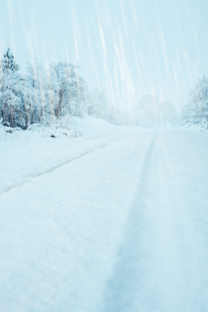 Route enneigée dans une forêt