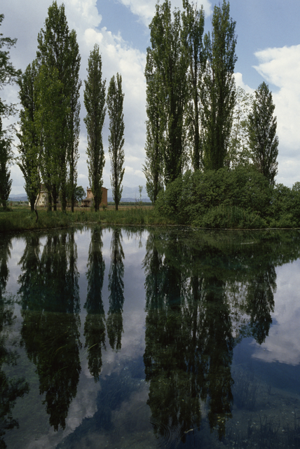 Reflets de peupliers dans un étang paisible