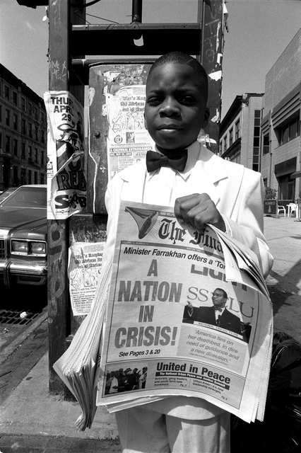 Garçon vendant des journaux en ville