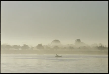 Deux Personnes dans un Bateau sur un Lac Calme