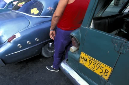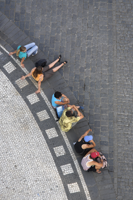 Discussion en scooter dans les rues pavées