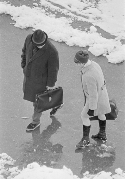Promenade hivernale en ville de deux personnes