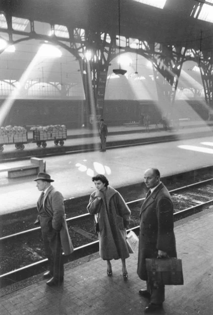 Gare ferroviaire en matinée brumeuse
