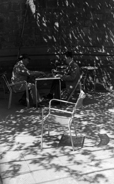 Homme jouant aux échecs à l’extérieur sous les ombres d’un arbre