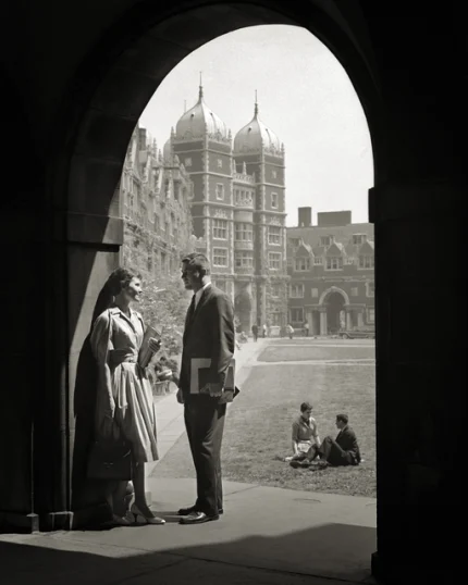 Conversation sous une arche dans une université