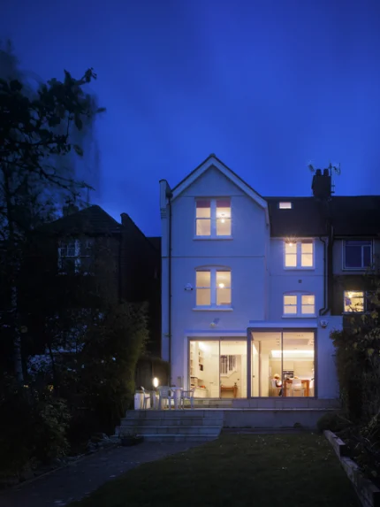 Maison illuminée au crépuscule