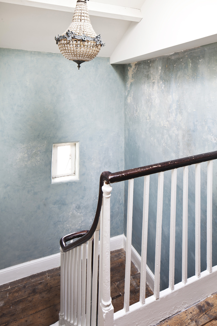 Escalier intérieur d’une maison ancienne avec décoration en porcelaine