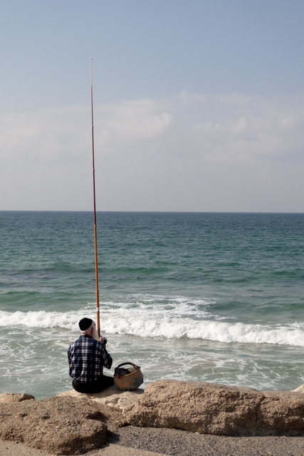 Pêcheur solitaire au bord de la mer