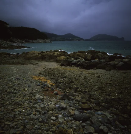 Paysage côtier rocheux par temps nuageux