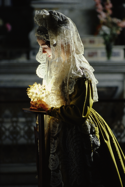 Femme en tenue traditionnelle avec voile tenant une bougie