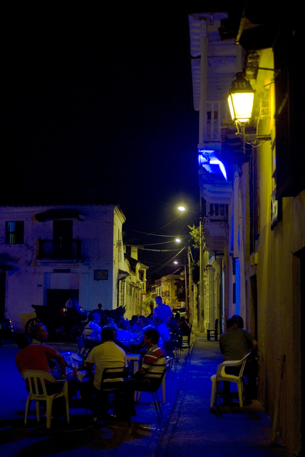 Jeunes dessinant sur une vitrine lors d’un évènement nocturne