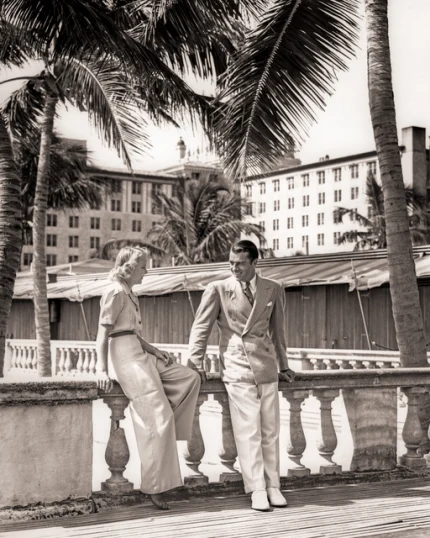 Arbre éclairé près d’une ancienne construction en bord de mer, au crépuscule