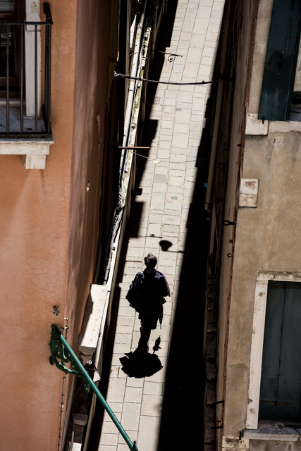 Personne marchant dans une ruelle d’une vieille ville européenne