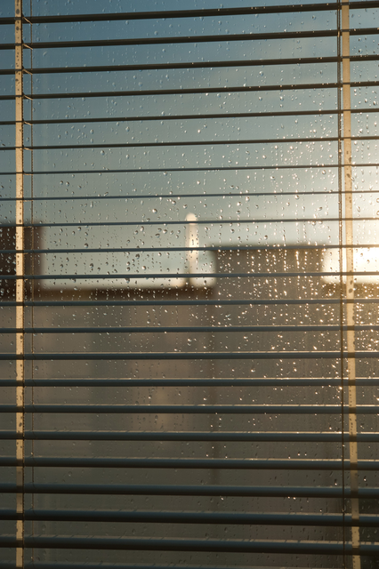 Store en vénitien avec gouttes de pluie contre la lumière du jour