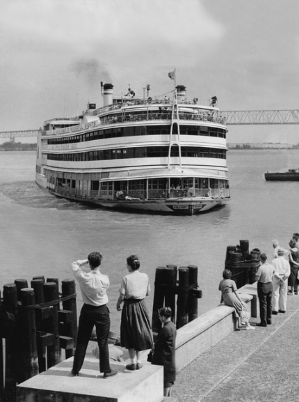Bateau historique arrivant au quai avec des spectateurs