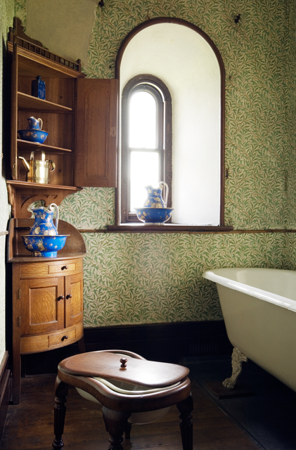 Salle de bain vintage avec décor en bois et porcelaine